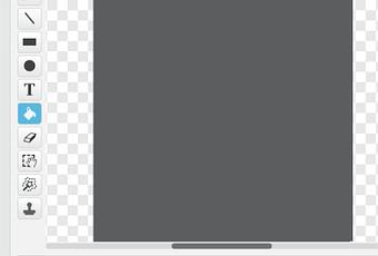 J’obtiens un carré gris de 100 pixels de coté. Comme vous pouvez le remarquer, j’ai indiqué comme coordonnées de départ -50 et 50. Cela me permet de centrer naturellement le carré sur l’écran sans avoir besoin de réitérer l’opération dans l’interface de dessin par la suite. Il ne me reste plus qu’à faire un clic droit sur la scène, à sauvegarder l’image et à l’importer ensuite en tant que lutin. Pour la terminer, dans la partie dessin, j’utilise alors le pot de peinture pour remplir l’intérieur de gris et remplacer le blanc du fond par la « couleur » transparente (carré blanc barré de rouge).