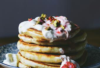 J'ai accompagné les pancakes sur la photo de Labneh, purée de framboises, pistaches concassées & d'une touche de sirop d'érable.