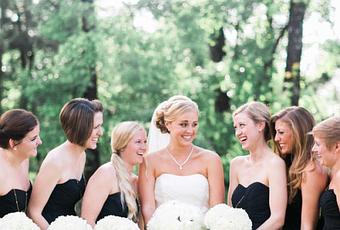 Une robe de mariée intemporelle, et des demoiselles d'honneur en noir