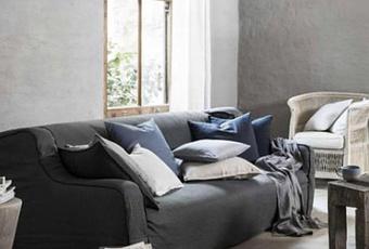 Un salon élégant au tissus soyeux et enveloppant chez H&M Home