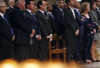 Le président @fhollande assiste à la messe d'hommage au prêtre Jacques Hamel, à la cathédrale @notredameparis pic.twitter.com/nwUxSI1oGn