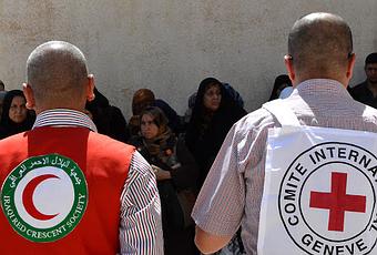 Le CICR et le Croissant-Rouge irakien durant une distribution de secours I Reuters