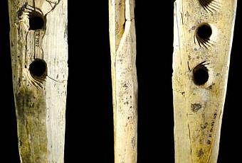 La trouvaille est une pièce en ivoire de mammouth soigneusement travaillée et bien conservée; elle fait 20.4cm de long et comprend quatre trous large de 7 à 9 mm. Chaque trou est bordée de profondes incisions en spirale.