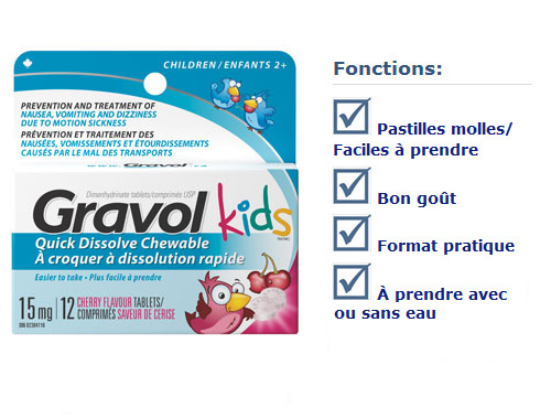Cette version de Gravol est aussi très populaire pour ceux souffrent du mal des transports, même pour les enfants de 6 ans et plus, il n'y a pas de contre indication! Et le plus important, c'est que ça soulage sans créer de somnolence!