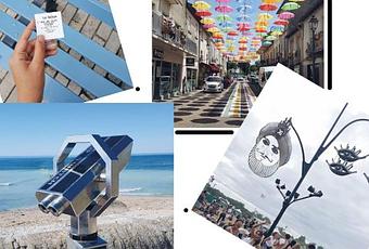 - Cette petite photo a été prise à Sainte Foy La Grande, petite village du Sud Ouest de la France. J’ai adoré cette installation de parapluie qui a rendu toute la rue joyeuse. J’ai vu d’autres photos fleurir sur Instagram du même type d’installation dans plusieurs villes et je me suis rendue compte que c’était un grand projet partout en France, mais impossible de savoir qui en a eu l’idée, ni pourquoi ça a été fait. Agueda, une artiste portugaise avait fait ce genre de réalisation dans son pays, mais je n’ai pas pu savoir si elle était à l’origine de celles fait en France.