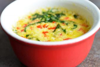 - Pendant ce temps, dans une jatte, fouettez les oeufs avec la fécule et le lait d’amande. Ajoutez l’huile d’olive, le basilic ciselé, l’ail haché et la fleur de sel. Ajoutez le poivron coupé en petits dés et mélangez.