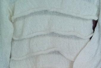 Continuer jersey endroit aig. n°4,5 en répartissant 25 augmentations au 1er rg (= 78 m.).