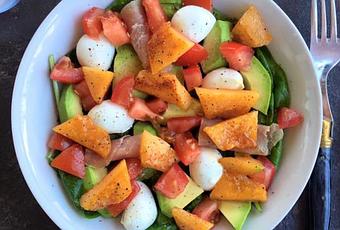 Chose promise...! Je te révèle, amie Pipelette, les secrets de réalisation de la merveilleuse, la délicieuse, l'audacieuse salade au melon poêlé ! Après une telle intro, je suis sûre que tu trépignes d'impatience ! ^^ Pleine de saveurs et de couleurs, gourmande mais équilibrée, la salade au melon poêlé deviendra bientôt la star de nos brunchs d'été !