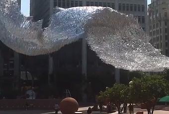 A Los Angeles, l’art s’exprime dans la rue et subjugue les riverains étonnés. Aux États-Unis, dans l’état de Californie, l’artiste Patrick Shearn, du collectif Poetic Kinetics, a installé sur Pershing Square, en plein cœur de la Cité des Anges, une monumentale sculpture « cinétique ». Fruit de l’assemblage de milliers de bandelettes de papier réparties sur une surface de 15 000 mètres carrés, l’œuvre d’art baptisée Liquid Shard (l’éclat liquide) hypnotise les passants…