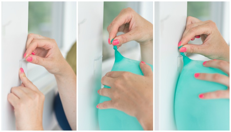 Pinces pour ballons pour fête CommandMD1) Détachez un crochet adhésif de son emballage, puis collez-le sur une surface plane et préalablement nettoyée.2) Étirez bien le ballon pour créer un espace entre le nœud et le ballon.3) Insérez le ballon dans la fourche de plastique de sorte que le nœud repose au-dessus de la fourche, puis relâchez.