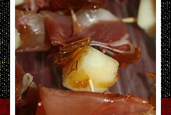 Voici la première recette d’une série permettant de composer un repas tapas. La plupart des recettes sont issues du livre Tapas y Aperitivos de Sergio Fernandez. Celle-ci est simplissime mais originale et savoureuse. Les petites brochettes de jambon et Manchego (fromage de brebis sec Espagnol mais j’en ai trouvé facilement en France) sont parsemées de caramel. L’équilibre des saveurs est parfait ! J’ai servi mon apéritif pour 8 personnes, les quantités sont à adapter en fonction du nombre de tapas différents proposés.
