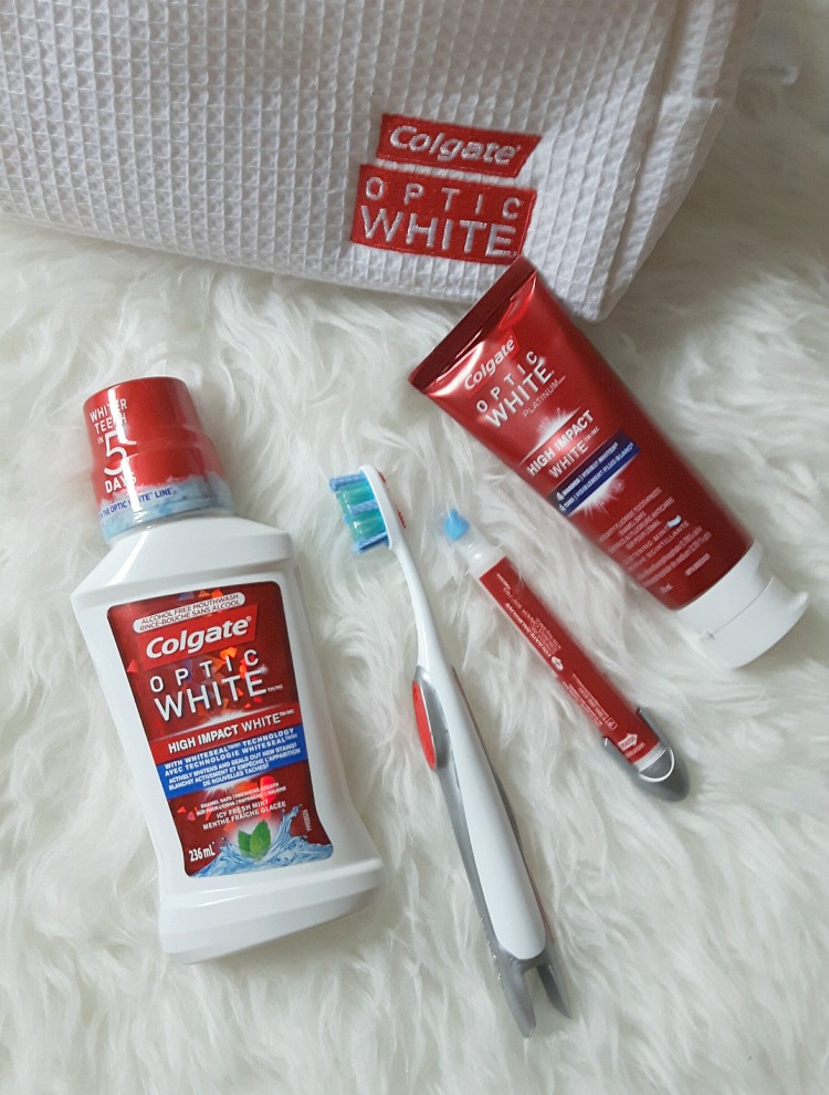 La toute nouvelle gamme de produits Colgate* Optic White* deviendra incontestablement votre « must » pour atteindre ou maintenir un tel résultat. Pour un sourire de quatre teintes plus blanc en seulement trois jours, il n’y a rien d’aussi efficace pour vous assurer un tel éclat!Brossage des dents 2.0J'ai mis à l'essai le rince-bouche sans alcool High Impact WhiteTM/MCà saveur de menthe glacée de Colgate* Optic White*, le dentifrice de Colgate* OpticWhite*PlatinumTM/MCHigh Impact WhiteTM/MC, 4 tons visiblement plus blancs et finalement, la brosse à dent Optic White*, avec stylo blanchissant intégré. Les 3 items fonctionnent de concert et je vous recommande de les utiliser ensembles pour obtenir de meilleures résultats, or j'ai tout de même sélectionné un coup de coeur dans le lot:la brosse à dent avec stylo blanchissant intégré