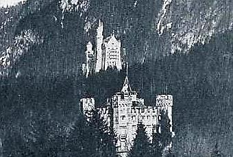 Photographie: les châteaux de Hohenschwangau et de Neuschwanstein en enfilade (avant 1904)