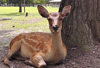 La ville est connue aussi pour son parc public accueillant des cerfs Shika (qui ressemblent aux daims) Il y a environ 1200 cerfs dans le parc, au abord des temples et sur la colline Tobihino. Selon la croyance shintoïste, ils seraient des messagers des dieux. Au moment de la création de Nara, le dieu Takemikazuchi serait entré dans la ville sur le dos d’un daim blanc pour la protéger. La ville de Nara les a érigés en symbole en les désignant comme trésor naturel.
