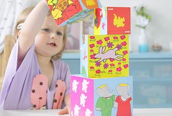 La "grosse" surprise de la Box fut sans aucun doute le jeux de cubes encastrables Babar de chez Vilac.Willow a été totalement emballée ! C'est pile ce qu'elle aime faire en ce moment : empiler des cubes, tout renverser et ensuite tout ranger.Les couleurs sont vives, les cubes sont solides. En revanche je ne vois pas trop le rapport avec la ferme, qui je rappelle, est le thème de la box.En dehors de ça, rien à redire ♥