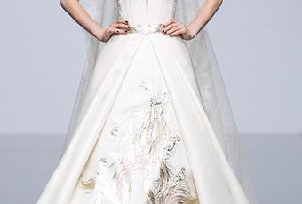 Spectaculaire dénouement, la robe de mariée célèbre la grandeur du moment: quintessence d'ivoire, caresses enflammées de platine, or et rose.
