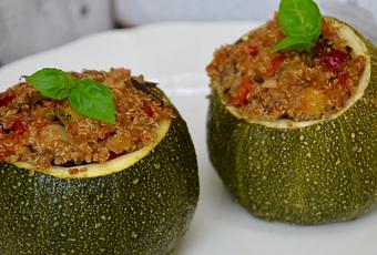 Des courgettes farcies et vegan au quinoa et légumes, un délice!