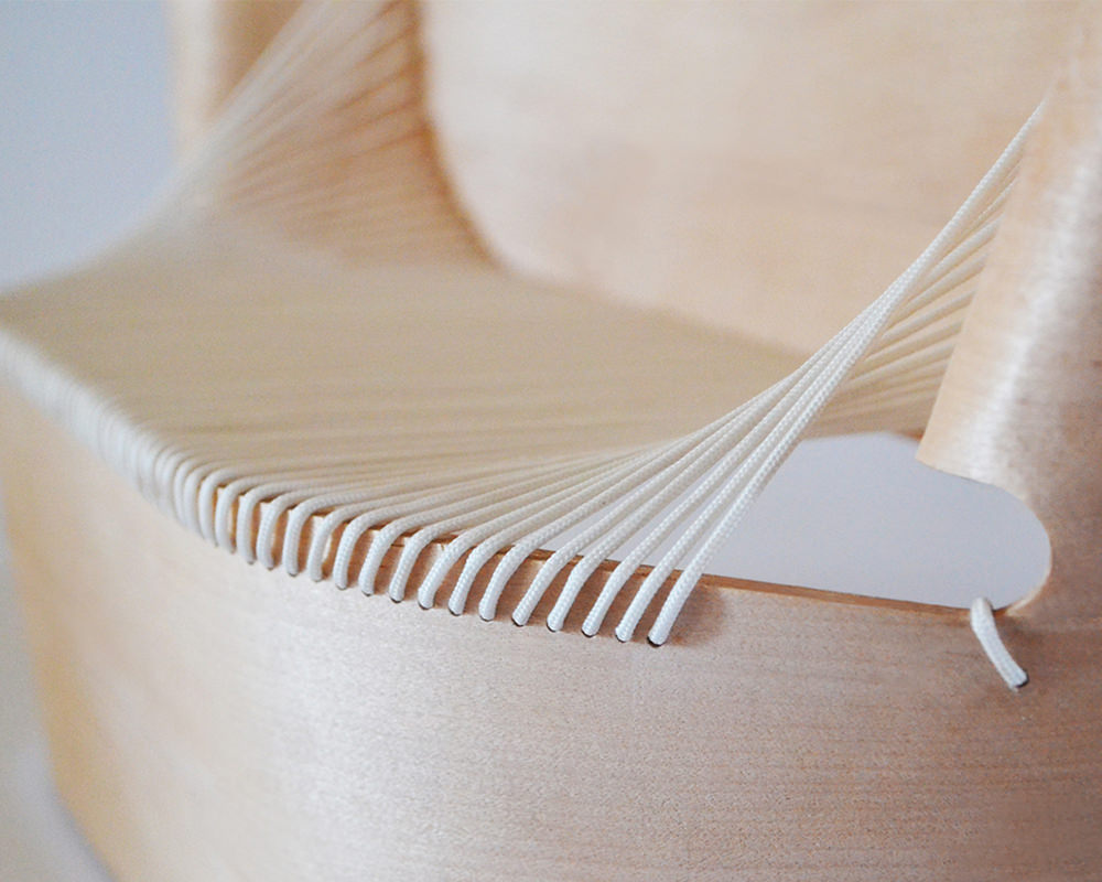 Grâce aux caractéristiques du bois cintré, l’objectif était d’obtenir une forme pure. De plus, il devait permettre également la création d’une pièce pouvant être à la fois élément central d’une pièce et, à la fois supporter les exigences d’une utilisation quotidienne.