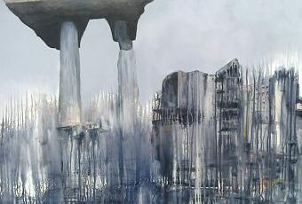 Que ses recherches picturales trouvent leur origine dans la photographie ne nous étonne pas, mais il déclare aussi son besoin « de créer des mondes de plus en plus abstraits ». C’est notre environnement le plus proche qu’on découvre dans ses paysages urbains, des fils électriques au-dessus des rues, de la grisaille des immeubles jusqu’à tout ce qui existe « de l’autre côté » ou « Vu d’en face ». (Oh, ce remarquable « Dolmen » !)