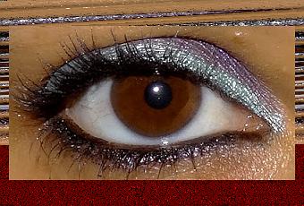Ce maquillage a été réalisé grâce aux pigments Aroma-Zone: du Mica Vert océan (pour l'effet eyeliner) sur une base de Mica parme électrique.