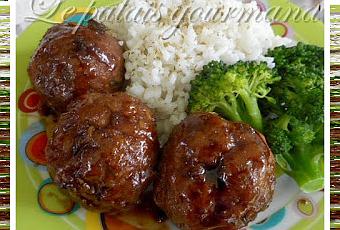 NOTE: Moi j'ai fais cuire mes boulettes au four à 350°(180°) environ 20-25 minutes. J'ai mis le miel et la sauce soya dans le chaudron, y est ajouté les boulettes et j'ai chauffer pour enrober et caraméliser mes boulettes.