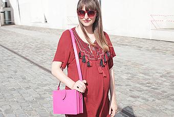Et avec des accessoires rose flashyet une touchecuivrée pour un style urbainet graphiqueshooté il y a une semaine à Paris. La petite robe fluide idéale pour les grosses chaleurs, et un baby bump plus qu'imposant !