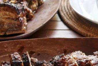 une chose en entraînant une autre j’ai préparé des travers de porc croustillants, puis des ribs à la citronnelle du jardin agrémentés de petits légumes au vinaigre et d’huile de ciboulette ; aujourd’hui, je vous raconterai la poitrine de porc laquée croustillante ;