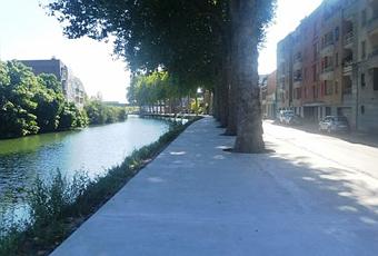 Vous avez tous apprécié, ŕ un moment ou un autre, vous promener sur le bord de la Deűle le long de la rue Hegel. Vous marchiez alors sur un tapis d'herbe protégés par l'ombrage des arbres qui bordent le canal. Eh bien, c'est fini ! Alors, point positif quand męme, on a gardé les arbres. Mais pour enlever la couche végétale en dessous et y mettre ŕ la place une superbe dalle béton.