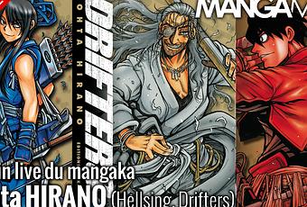 Le mangaka Kohta HIRANO, auteur de Hellsing et de Drifters, dessine en live le personnage de Nobunaga lors d’une rencontre à Japan Expo 2016. Les dix tomes d’Hellsing sont parus chez Delcourt/Tonkam. Drifters est en cours de parution, chez le même éditeur, avec quatre volumes à ce jour.