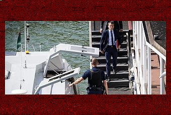 Emmanuel Macron s'en va avec la navette du Ministère, quand Taubira s'en était allée en vélo
