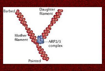 Quand il est activé, le complexe Arp2/3 initie la formation de nouveaux filaments d'actine par un processus appelé nucléation (...).