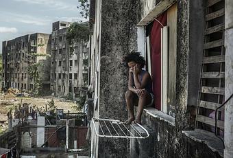 Eduarda (12 ans) vit dans l’un des cinq bâtiments inachevés qui devaient à l’origine constituer une copropriété pour classes moyennes. Bien que situées à proximité de Rio de Janeiro, ces constructions où 300 familles ont trouvé un toit ne suscitent aucune attention.© Peter Bauza / Echo Photojournalism