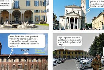 Une ville de près de 51.000 habitants (qu'on ne nomme pas les Rhoteurs mais les Rhodensi) dont le moral s'érode en "SI" : "et SI le ciel nous tombe sur la tête ; et SI Berlusconi revient ; et si le séisme frappe chez nous..."