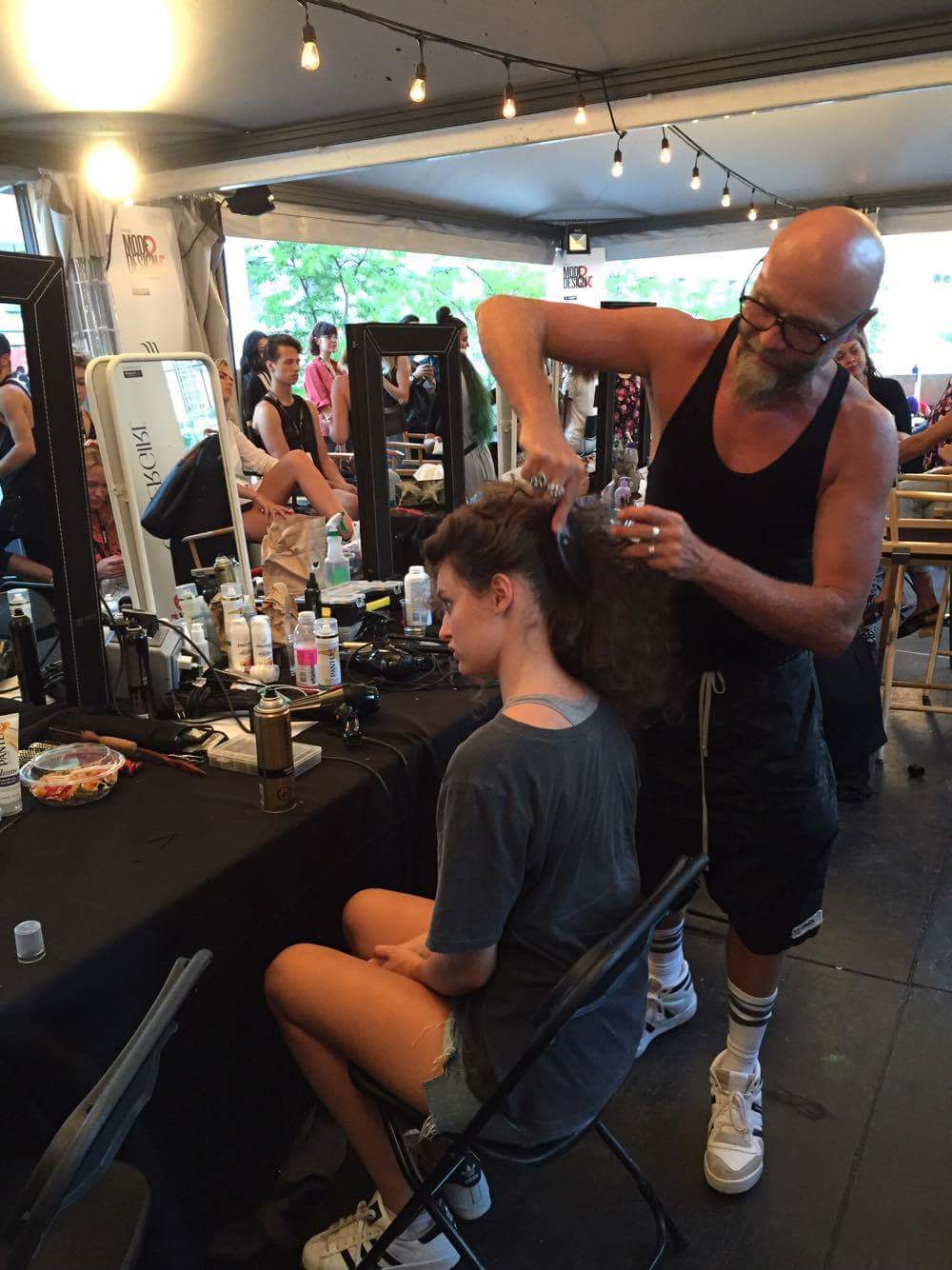 Premier arrêt prévu: les coulisses du FMD, où l'on pouvait voir mannequins, coiffeurs et maquilleurs à l'oeuvre. Sous une chaleur mémorable, ils ont crée les looks devant nos yeux, pour chacun des défilés à venir en soirée.