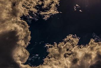 Menaçant, le voile nuageux ne fut pas assez épais pour occulter l’éclipse annulaire du Soleil, à la Réunion. Le disque lunaire est quasi centré sur celui de l’astre du jour. On peut distinguer les aspérités du relief sur le limbe de notre satellite. © Dave Pot, Flickr