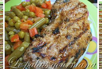 Une délicieuse recette donc je me suis inspirée chez, Ma cuisine sans prétention, pour mariner ma viande et la cuire sur le bbq et non dans le four. Je vous laisse la version originale et mettrais une note en bas pour ce que j'ai fais et/ou changé.4 côtelettes de porc