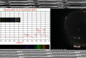 Le mercredi 5 novembre 2015; à 5h30, deux stations de détection miniatures d’UFO-Science ont détecté un objet. Pour la troisième fois, nous avons acquis le spectre de celui-ci (voir article du 5 juillet 2015)