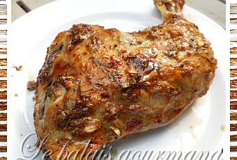 Piquer les cuisses un peu partout, les déposer dans un grand plat allant au four ou un sac à congélation. Mélanger les ingrédients de la marinade, verser sur la viande et bien enrober. Mariner minimum 3 heures ou pour plus de saveur, toute une nuit. Cuire au four à 400°(200°) environ 1h00 ou jusqu'à ce que le poulet soit bien cuit.