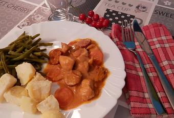 Tags : poulet, simple, chorizo, poivrons, carottes, paprika fumé, crème, lait, bouillon de boeuf