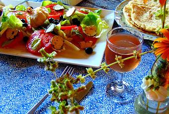 - des saucisses (Field Roast au pesto) avec des gourganes du jardin