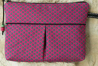 On a toujours besoin d'une trousse à maquillage. Rectangulaire, celle-ci est très jolie avec les petits détails bien pensés : La fermeture Eclair qui permet de la fermer est ornée de 3 petites perles, une languette permet de la suspendre à un crochet et le passepoil délimite une zone à soufflet.