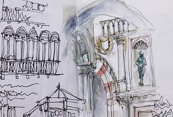 Et c'est parti !! Aujourd'hui à #Venise je me suis baladée, j'ai dessiné, j'ai plus de pieds et je m'excuse par avance aux gens qui me complimentent en italien car à part dire grazié je suis un peu limitée! 😅 #sketchbook #drawing #sketching #dessin #carnets #instablog #travelletting #urbansketchers #fb #tweet