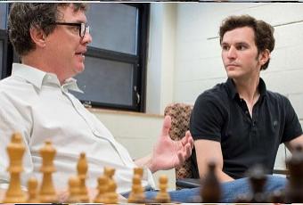 A gauche, Zach Hambrick, professeur de psychologie de l'Université du Michigan, et Alexander Burgoyne, son étudiant diplômé, discutent de la corrélation entre le niveau aux échecs et l'intelligence - Photo © G.L. Kohuth