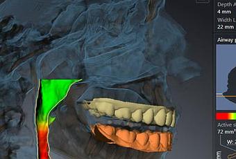 SICAT Air est la première solution 3D qui permet l'analyse volumétrique des voies respiratoires supérieures en 3D et reproduit le flux de travail d'un traitement par gouttières, et ce par voie complètement numérique. A l'aide de ce logiciel, les dentistes peuvent commander des gouttières de protrusion très rapidement et en toute simplicité, réduire les ronflements et atténuer ou soulager les apnées du sommeil obstructives légères à moyennes.