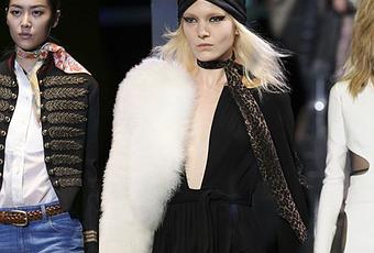 Le petit foulard revient en force cette saison! Chez Gucci, Frida Giannini a noué ses célèbres carrés de soie imprimés sous des vestes militaires denim et des hauts en forme de kimono avec des extrémités qui dépassent sur les côtés. Chez Saint Laurent, Hedi Slimane a accessoirisé chacun de ses looks seventies avec une longue bande de mousseline imprimée, tandis que Tom Ford a utilisé des foulards de soie noire comme choker.