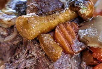 cette fois-ci j'ai utilisé comme contenant un " slow-cooker " cadeau d'une amie Sud-africaine ; à cause des coupures d'électricité intempestives, je ne l'avais que très rarement utilisé aux Comores ; sauf pour faire du confit avec un magnifique canard gras rapporté de Madagascar.....