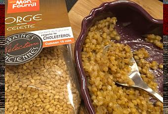 Je ne connaissais pas l'orge céleste, un joli nom plein de promesse qui est une variété d'orge plate commercialisée par Mon Fournil.Jusqu'à présent j'associas uniquement cette céréale à la bière et je ne savais pas qu'elle contribuait à maintenir un bon taux de cholestérol.