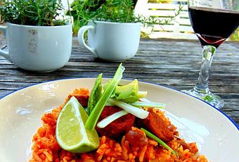 Pendant ce temps, on a pris soin de cuire des saucisses végétales, en rondelles (Gusta espanõla).