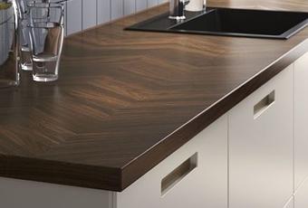 Pour ma part j’ai un vrai coup de cœur pour le nouveau plan de travail BARKABOSA. Sa finition en placage noyer massif se mariera aussi bien avec des façades colorés que noires ou blanches pour un style chic !