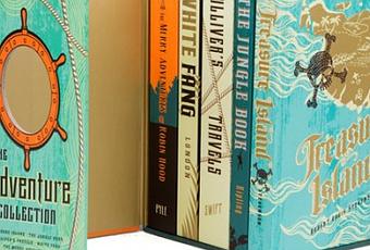 voici le dernier coffret réalisé pour la collection Heirloom. Cette fois, il regroupe des ouvrages d'aventures. On y trouve Robin des bois, Croc Blanc, L'île au trésors, Le livre de la jungle et Les voyages de Gulliver. Les graphistes et illustrateurs ont choisi quelques tons et couleurs pour ce coffret, qui forment un ensemble vraiment beau : bleu, orange et beige. Je vous laisse découvrir tout ça.